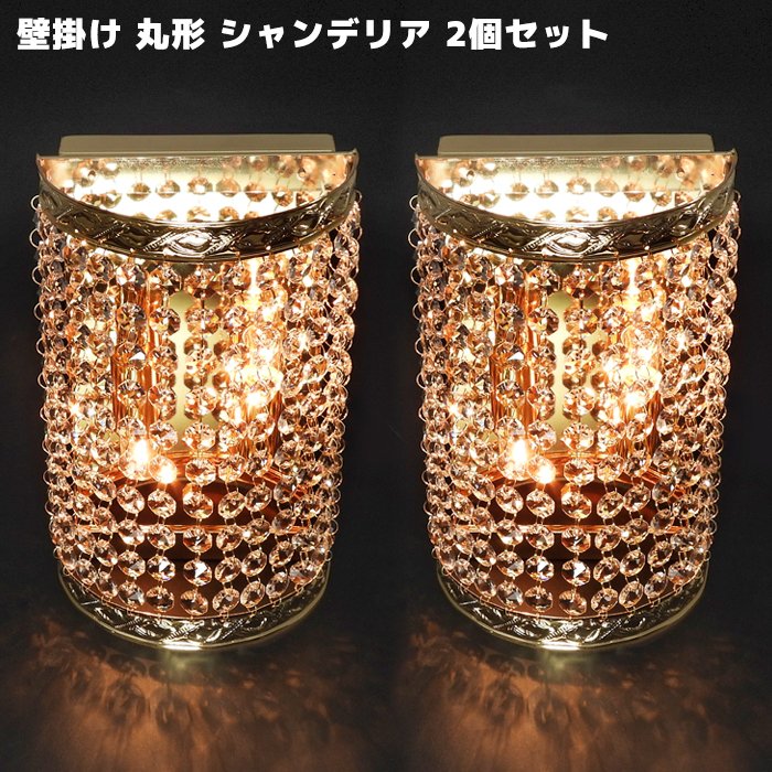 壁掛け シャンデリア 柱灯 半円柱 壁掛 B01 2個セット 12V / 24V フル ゴールド メッキ クリスタル ガラス ビー...