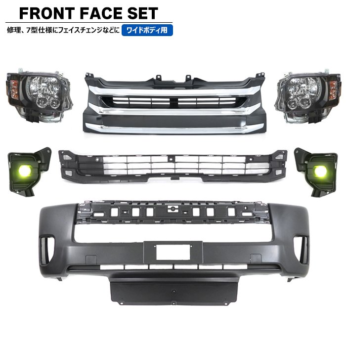 200系ハイエース ワイド 7型 8型 フロント 7点 フェイスチェンジ セット Ver.16 LED ヘッドライト グリル バン...