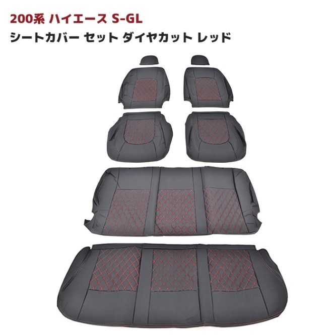 ハイエース 200系 S-GL シートカバー セット ダイヤカット レッド ステッチ 運転席 助手席 後部座席セット