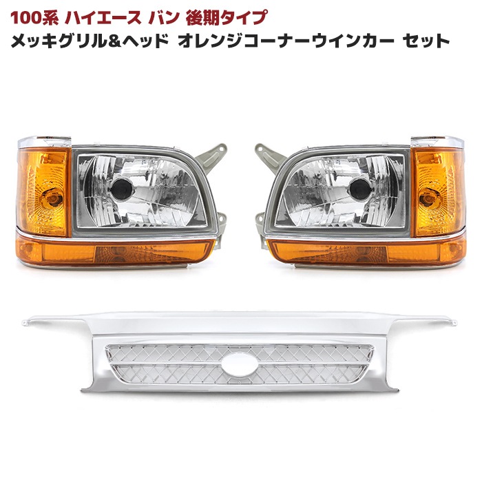 100系 ハイエース バン 後期 メッキ グリル & ヘッド オレンジ コーナー ウインカー セット