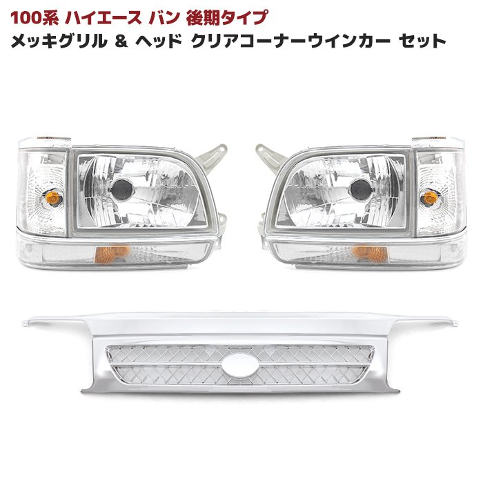 100系 ハイエース バン 後期 メッキ グリル & ヘッド クリア コーナー ウインカー セット