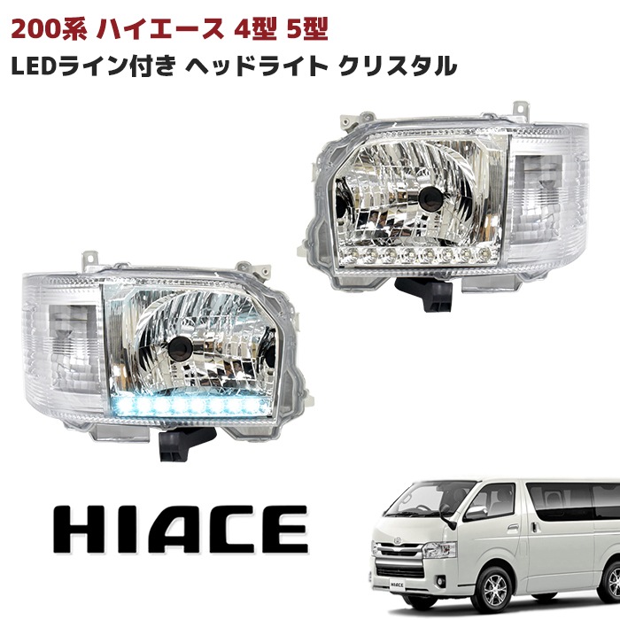 200系ハイエース 4型 5型 6型 7型 8型 9型 ホワイトLEDライン付き ヘッドライト 左右セット クリア ハロゲン H4...