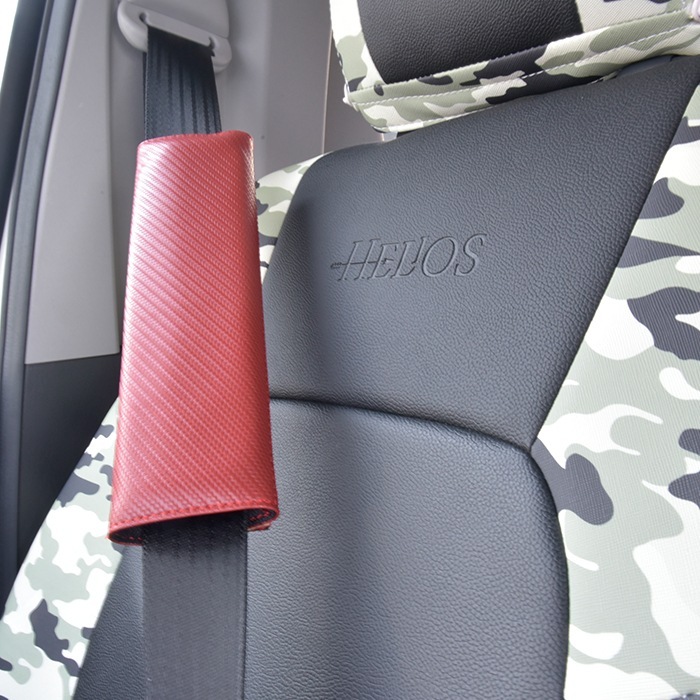 汎用 シートベルトパッド 2個セット カーボン調 レッド PVCレザー シートベルトカバー クッション