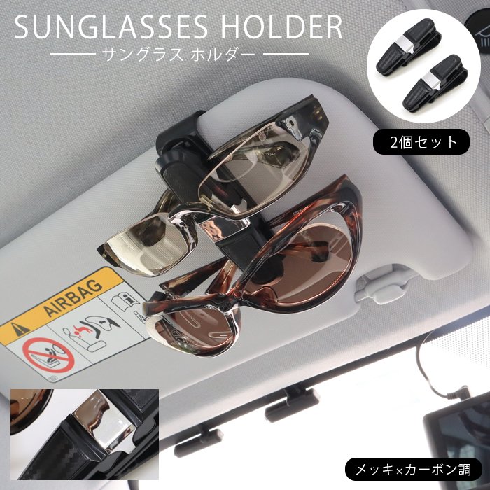 車用 サングラスホルダー クリップ メッキ × カーボン調 2個セット 新品 サンバイザー メガネ 眼鏡 カード チケット カー用...