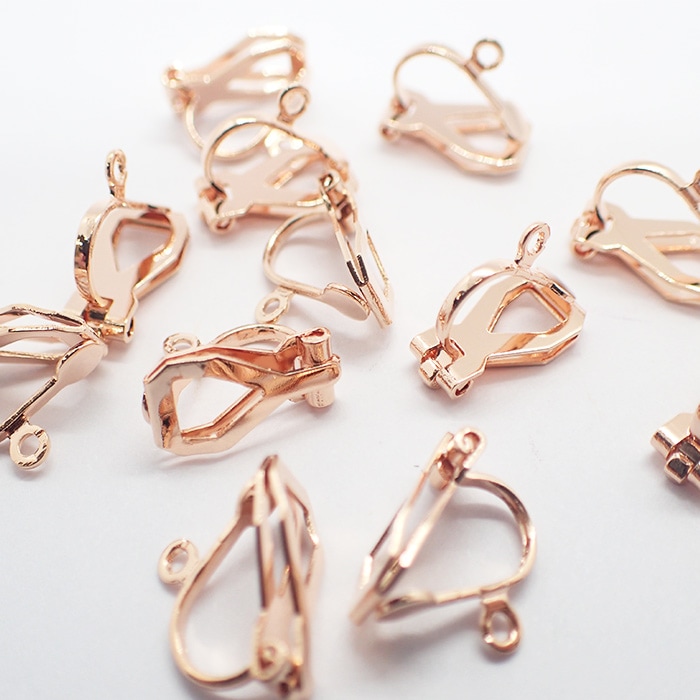 アレルギー対応 【サージカルステンレス特注品】カン付/なし クリップイヤリングパーツ ピンクゴールド【19】約12mm【50個売...