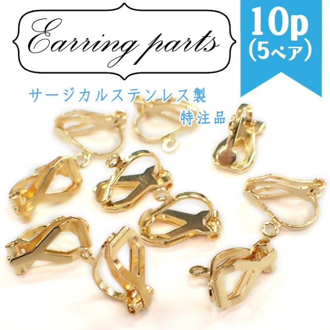 アレルギー対応 【サージカルステンレス特注品】カン付/カンなし クリップイヤリングパーツ ゴールド【19】約12mm【10個売り...