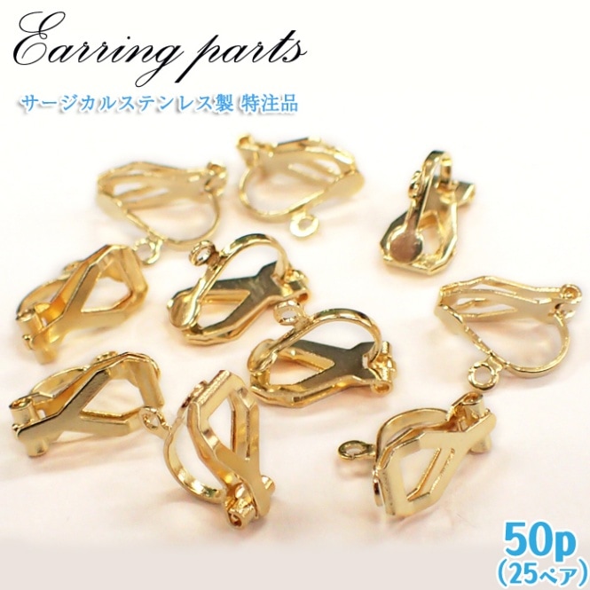 アレルギー対応 【サージカルステンレス特注品】カン付/カンなし クリップイヤリングパーツ ゴールド【19】約12mm【50個売り...