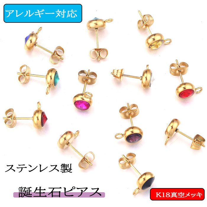 ステンレス304 ラインストーン 丸 (7mm) 1ペア 一粒ピアス スタッドピアス 金属アレルギー 国内発送