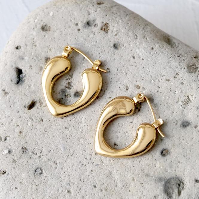 金属アレルギー対応 サージカルステンレス 【173. ハート フープピアス M 20x16mm】 キャッチレス オープンハート メ...