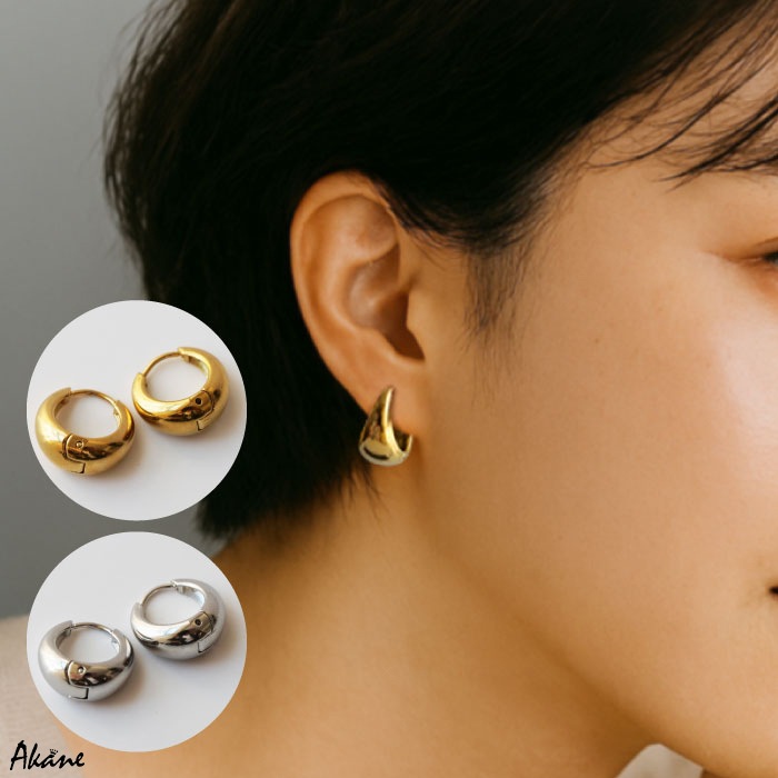 金属アレルギー対応 【 フープピアス 1ペア】 ステンレス ピアス ゴールド シルバー バイカラー 国内発送