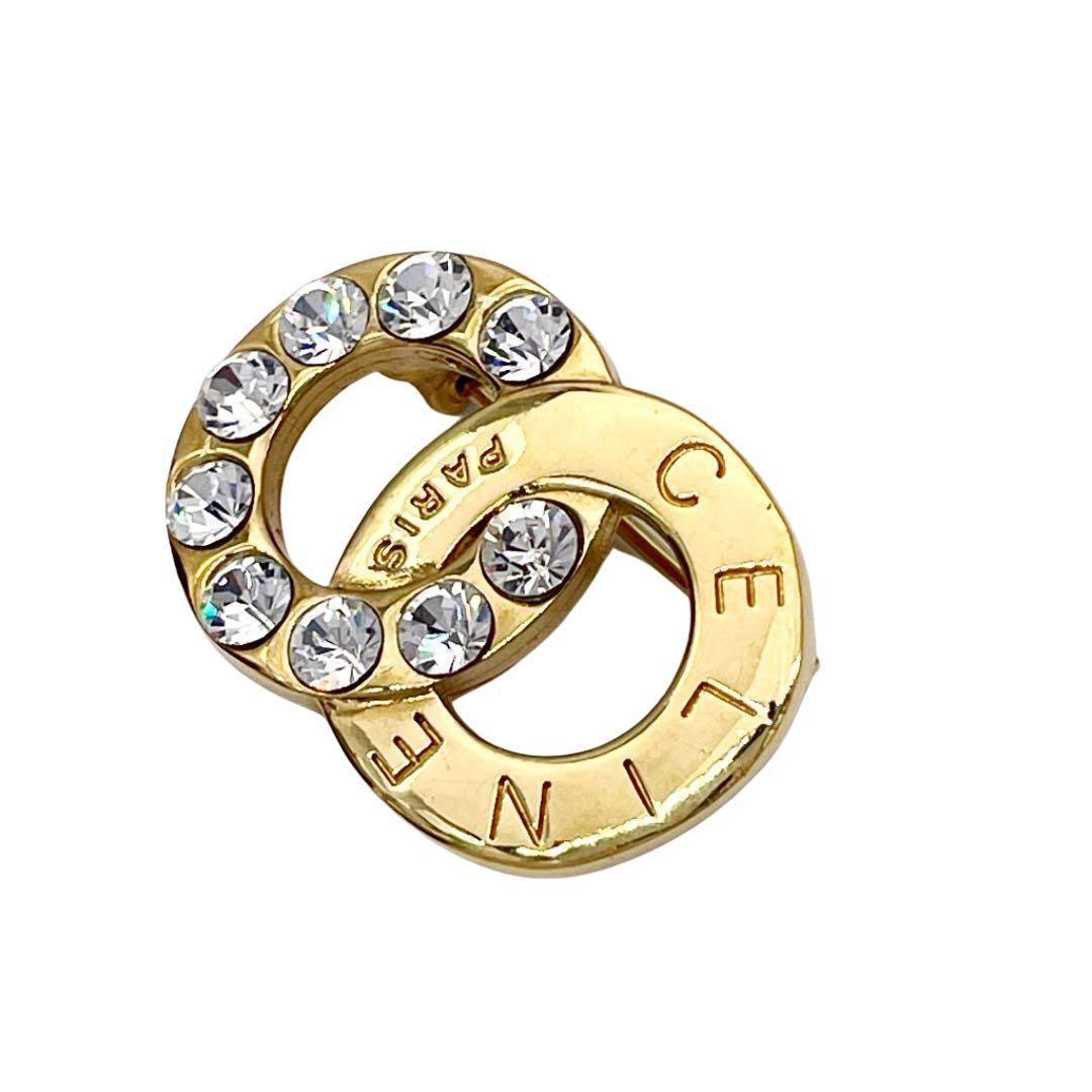 CELINE セリーヌ ブローチ ダブルサークル ラインストーン ゴールド