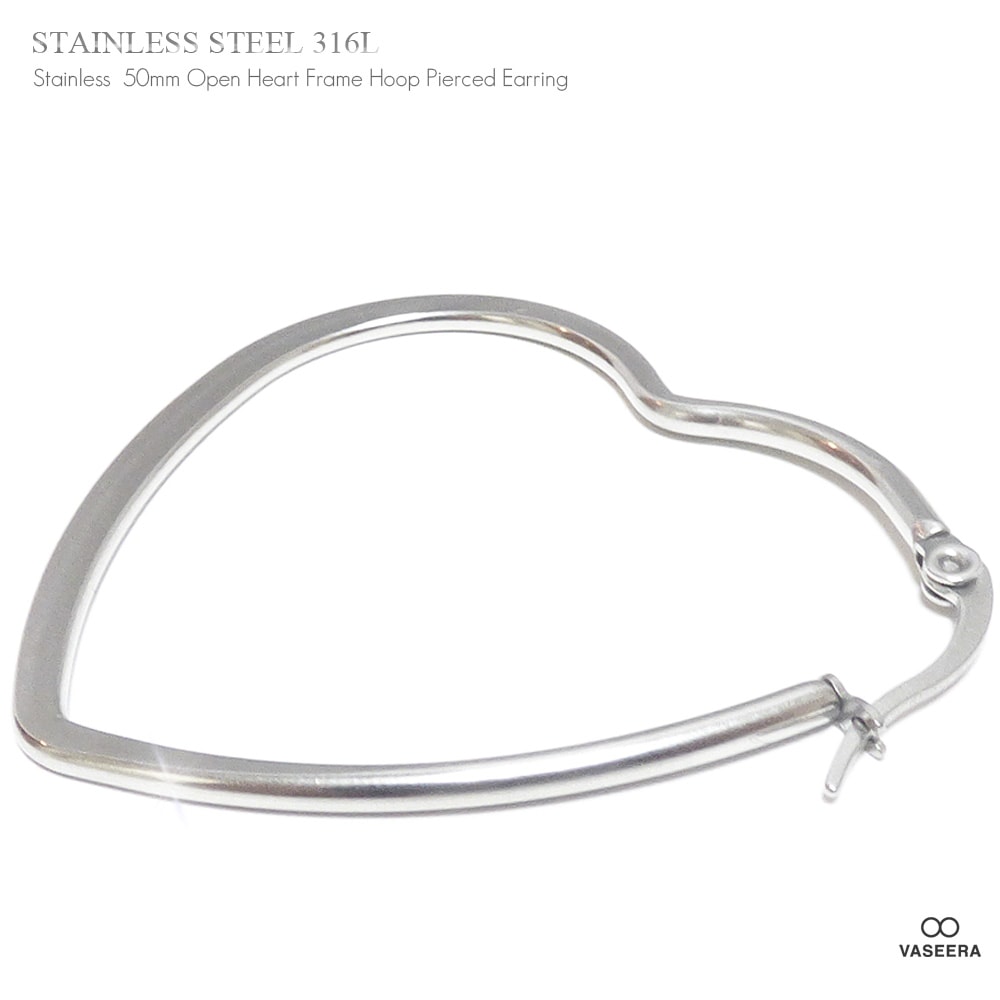 【単品販売(一個)】 50mm オープンハート(ハート・フレーム) フープピアス 【ステンレスピアス/サージカルステンレス/S.S...
