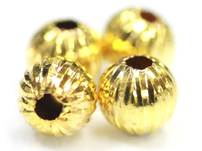 【激安】パーツ・副資材/メタルパーツビーズ/縦筋入りビーズ/ゴールド/ラウンド/5×6mm/10個