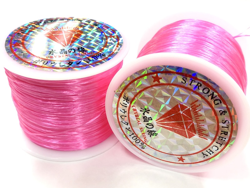 【超激安特価!】約35m/ブレスレット用オペロンゴム(伸びるテグス)/水晶の線/フクシャピンク/1個【ネコポス不可】