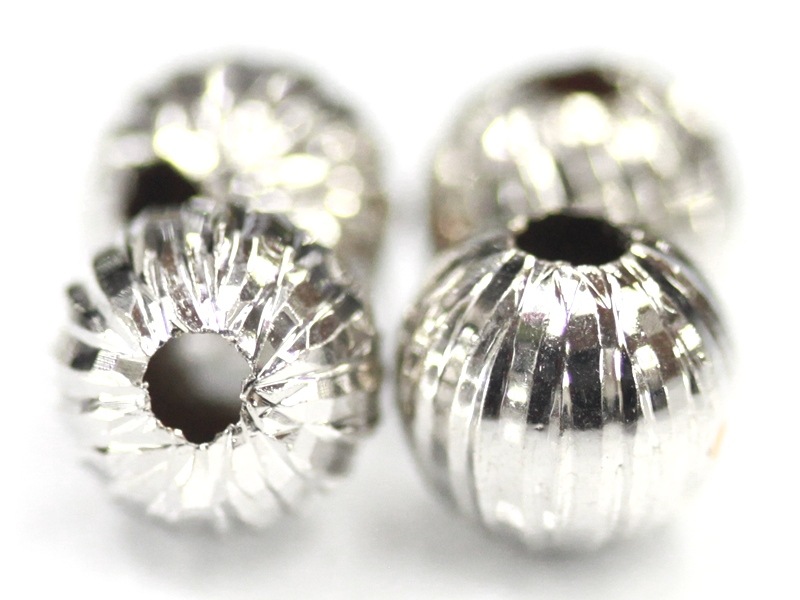 【激安】パーツ・副資材/メタルパーツビーズ/縦筋入りビーズ/シルバー/ラウンド/5×6mm/10個