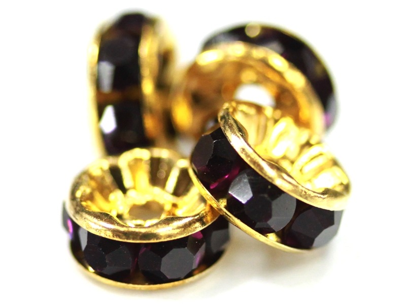 【激安】パーツ・副資材/ロンデル/ゴールド&ダークパープル/8mm/平型/10個