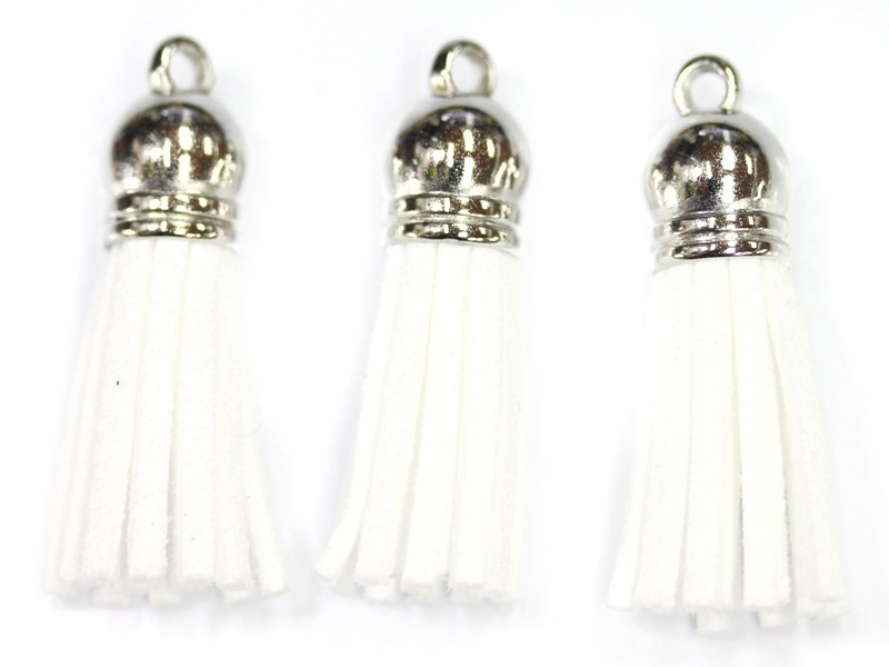 【激安】パーツ・副資材/フェイクレザースエード(スウェード)タッセル/ホワイト×シルバー/約35~40mm/1個