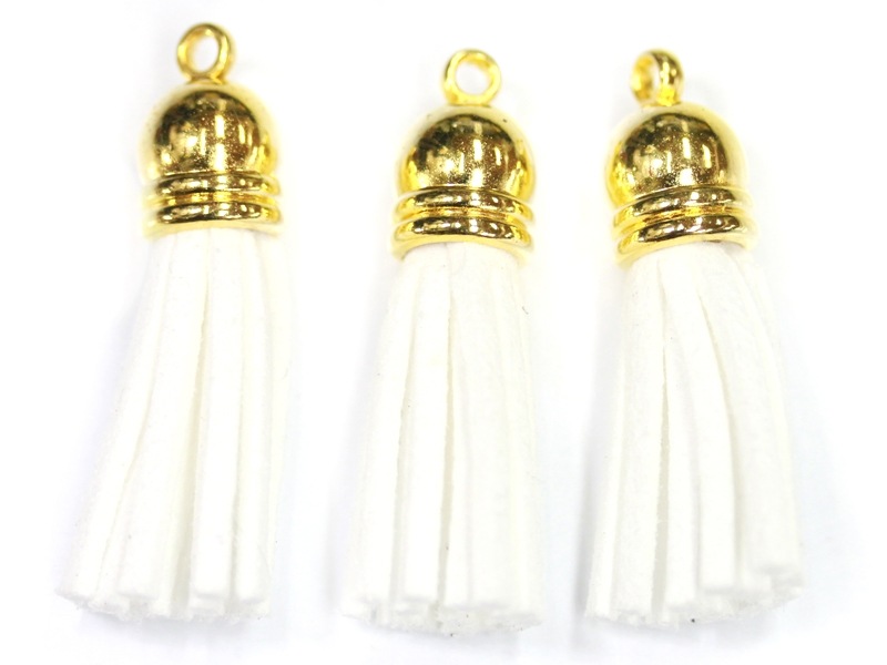【激安】パーツ・副資材/フェイクレザースエード(スウェード)タッセル/ホワイト×ゴールド/約35~40mm/1個