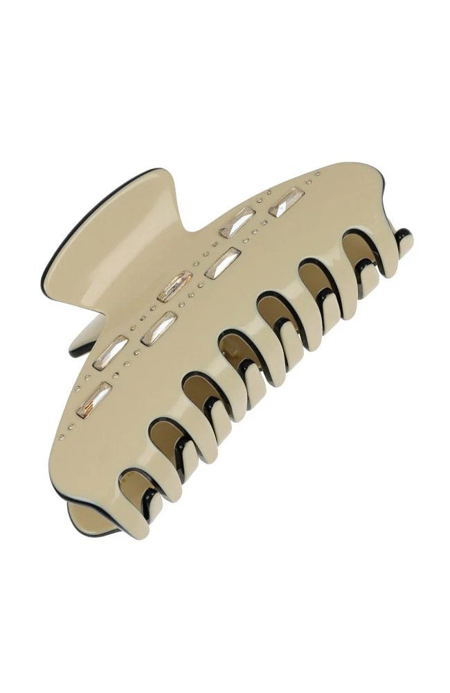 ジュエル ミディアム バレッタ(ブラック/ベージュ)
