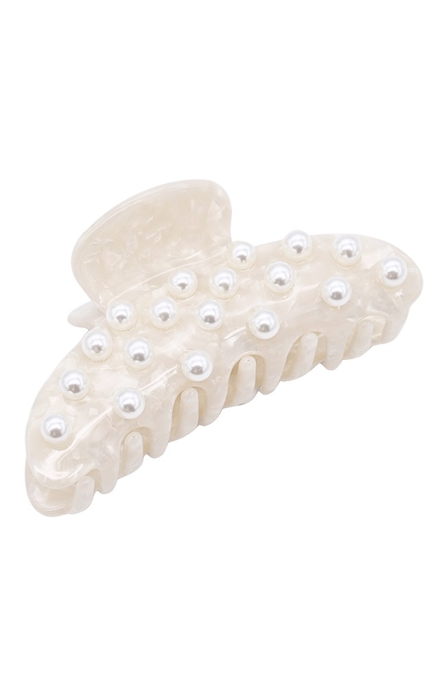 メタル & パール バレッタ (クリーム/ローズゴールド)