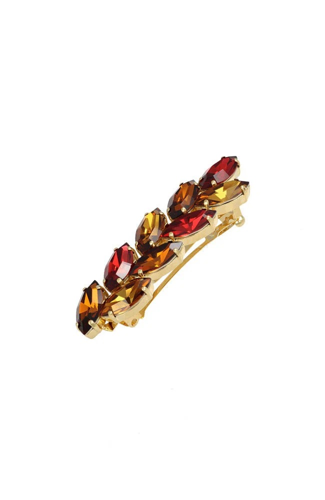 スモール アイビー クリスタル バレッタ (スカーレット/ライトアンバー/スモークドアンバー)