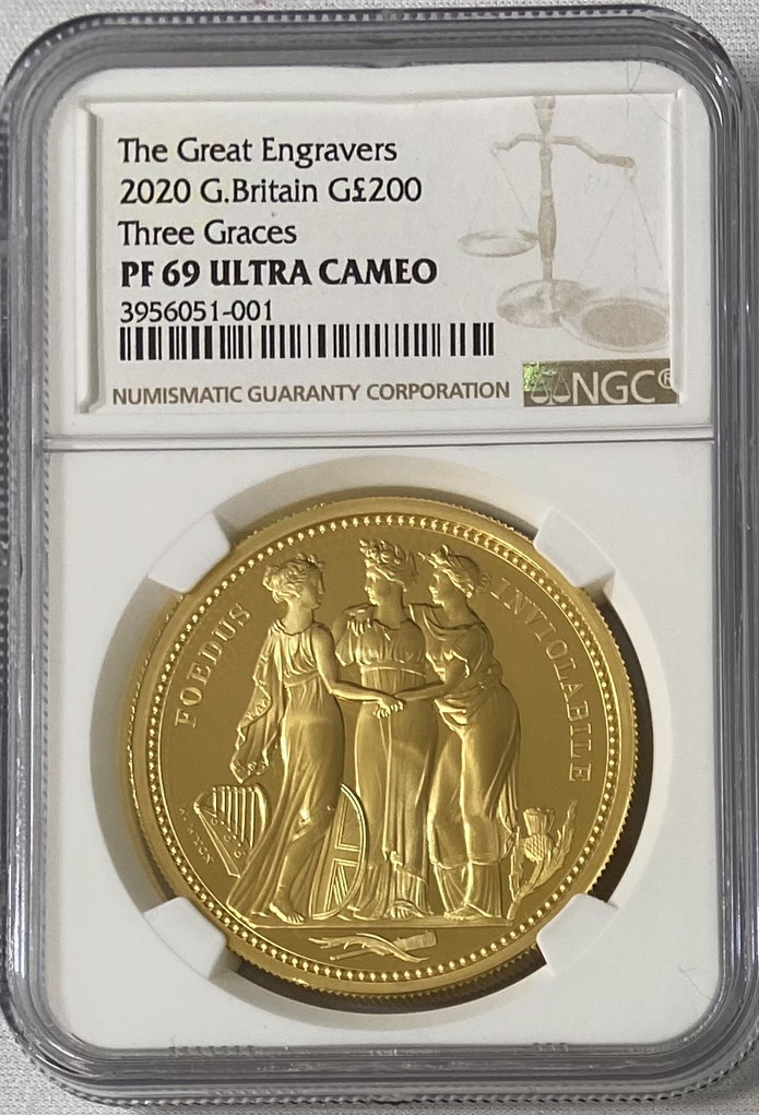 【動画あり】グレートブリテン 2020年 スリーグレイセス 2オンス200ポンド金貨 NGC-PF69UCAMオリジナル箱付き