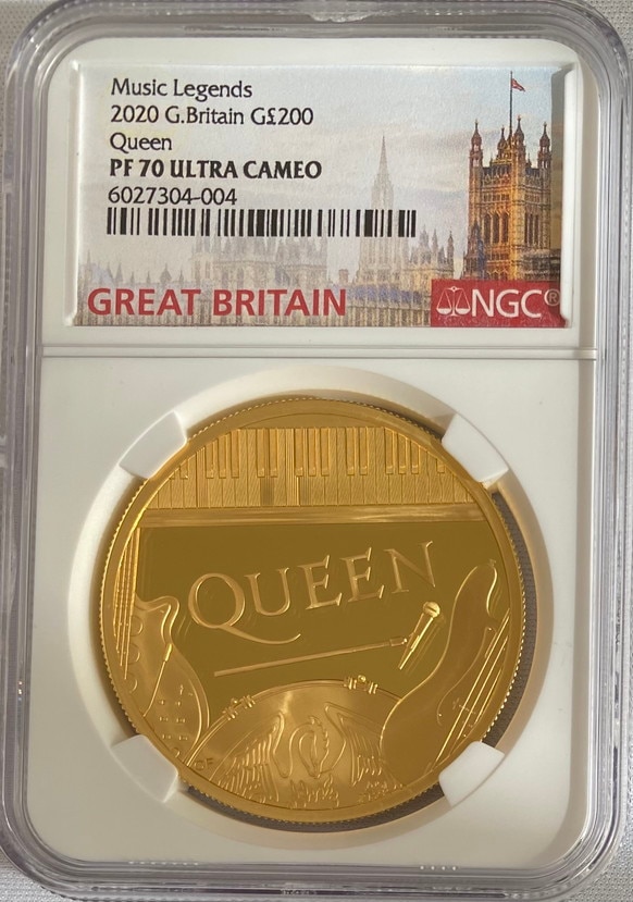グレートブリテン2020年音楽の伝説シリーズクイーン2オンス200ポンドプルーフ金貨NGC-PF70UCAMオリジナル箱付き