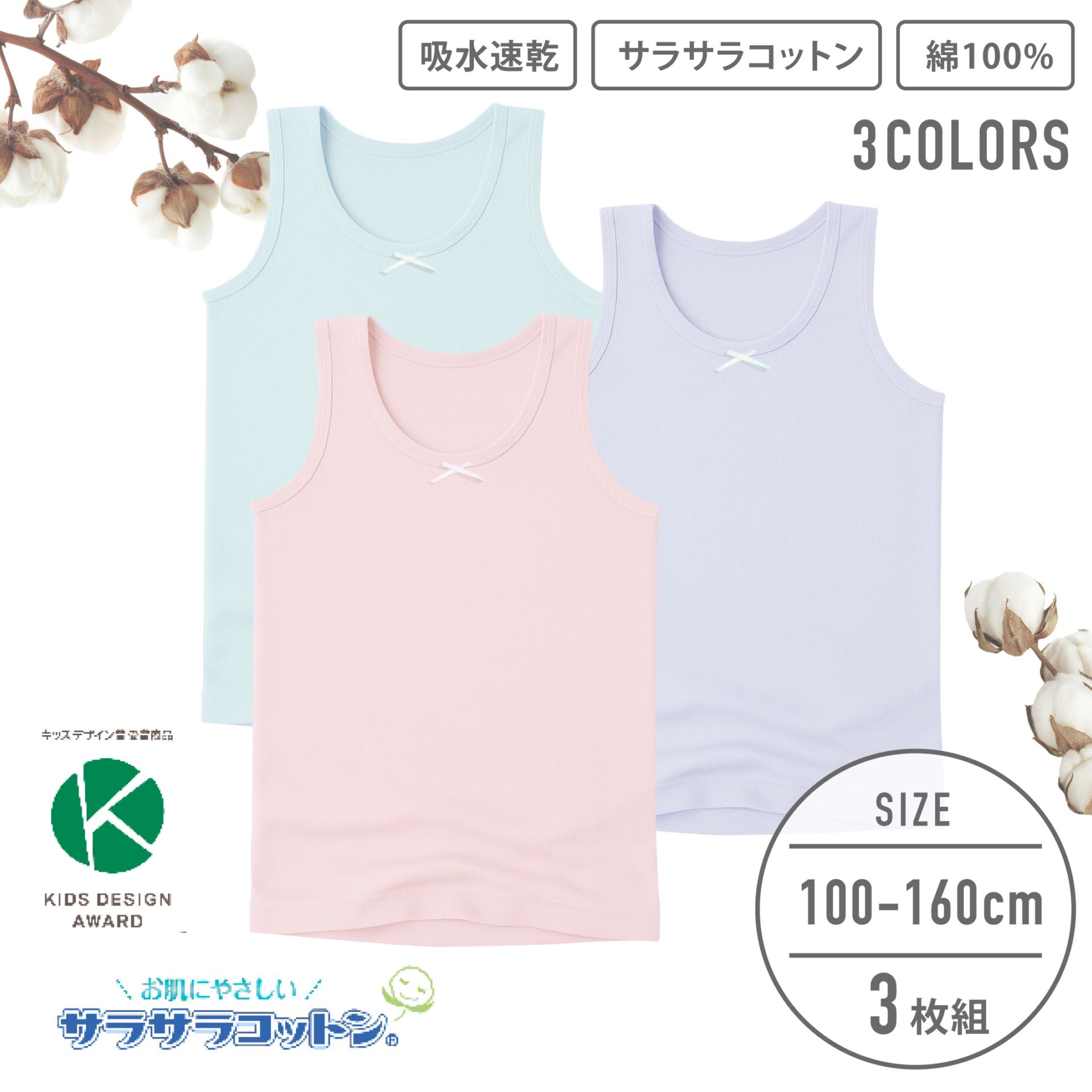 販売数60万セット突破!【女の子】キッズジュニアタンクトップ 3枚組 サラサラコットン 100~160cm 【綿100%/吸水速乾...