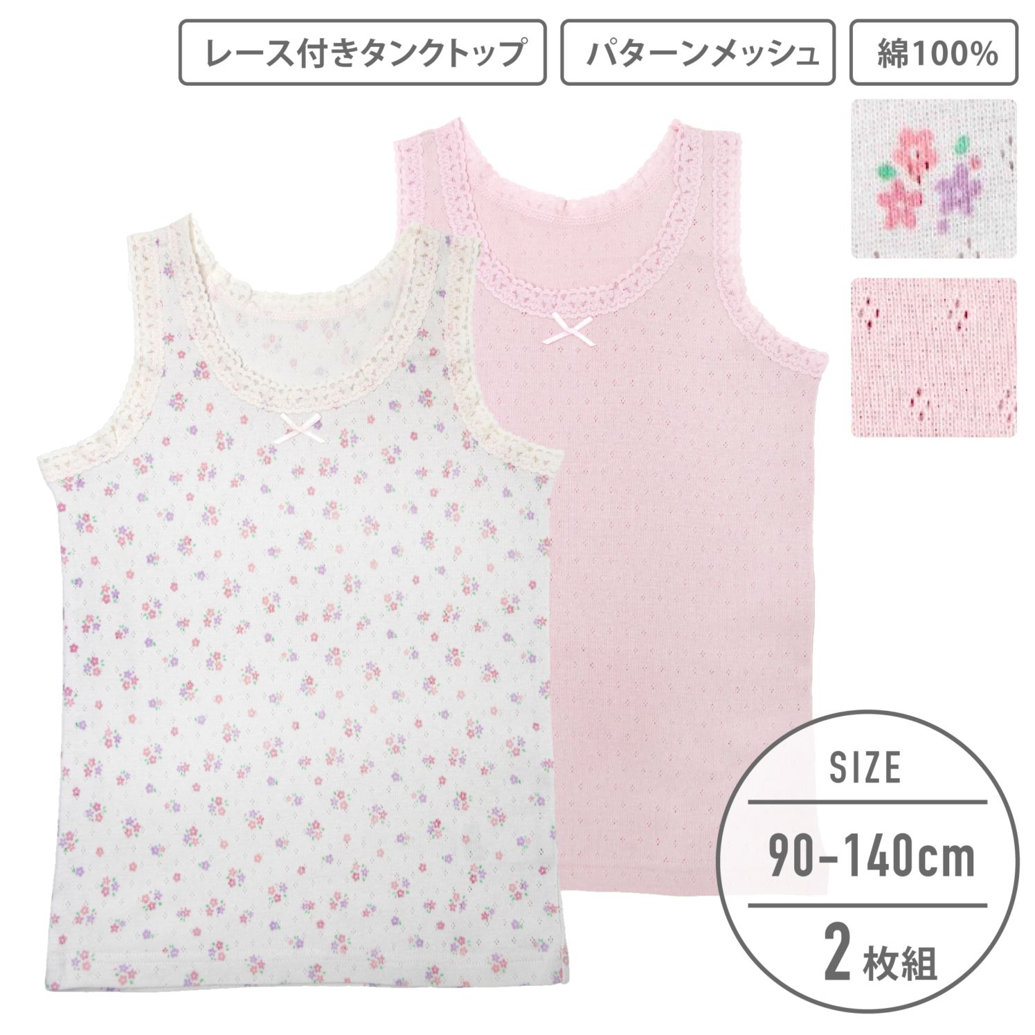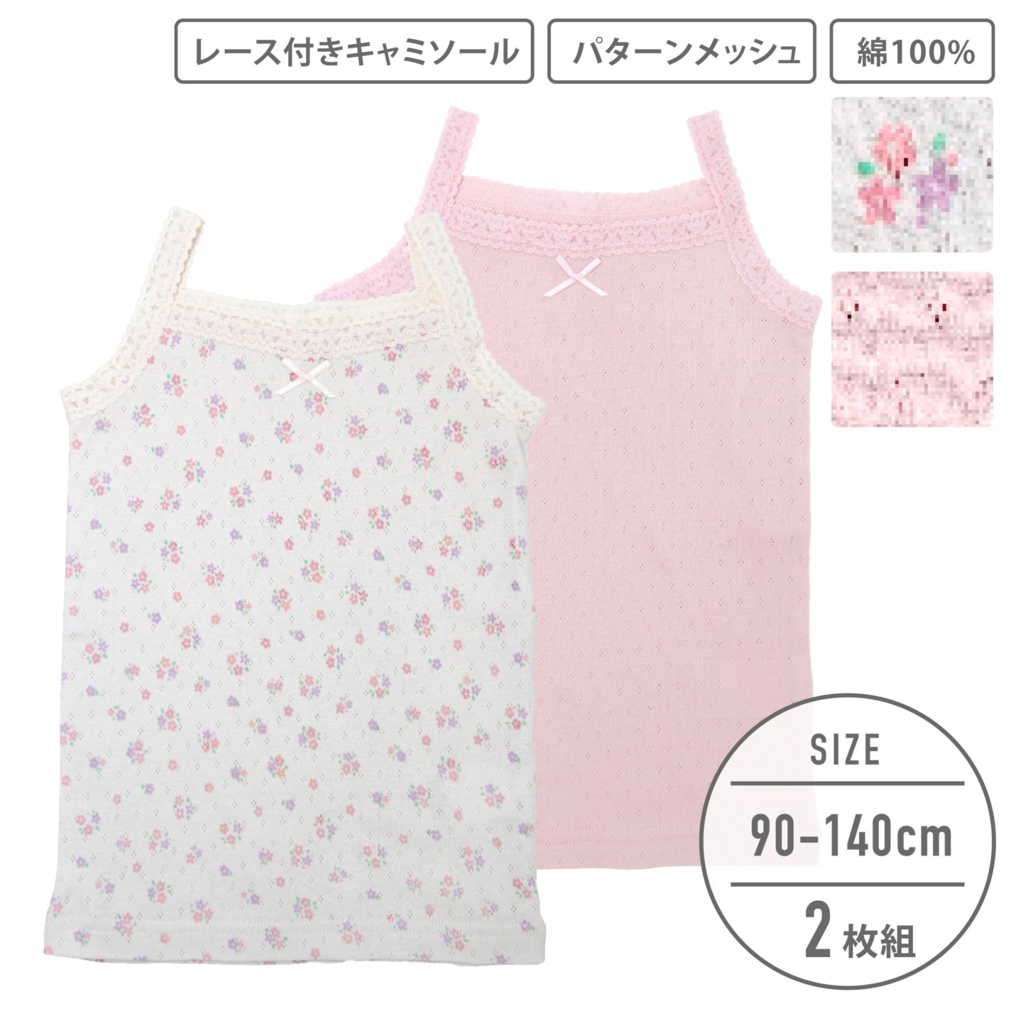 【女の子】キッズキャミソール 2枚組 パターンメッシュ生地 90~140cm 【綿100%】
