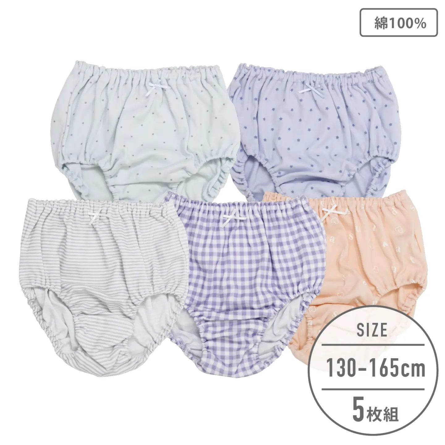 【女の子】キッズジュニアショーツ | シンプル&パステル総柄 | 5枚組| 130~165cm【綿100%】