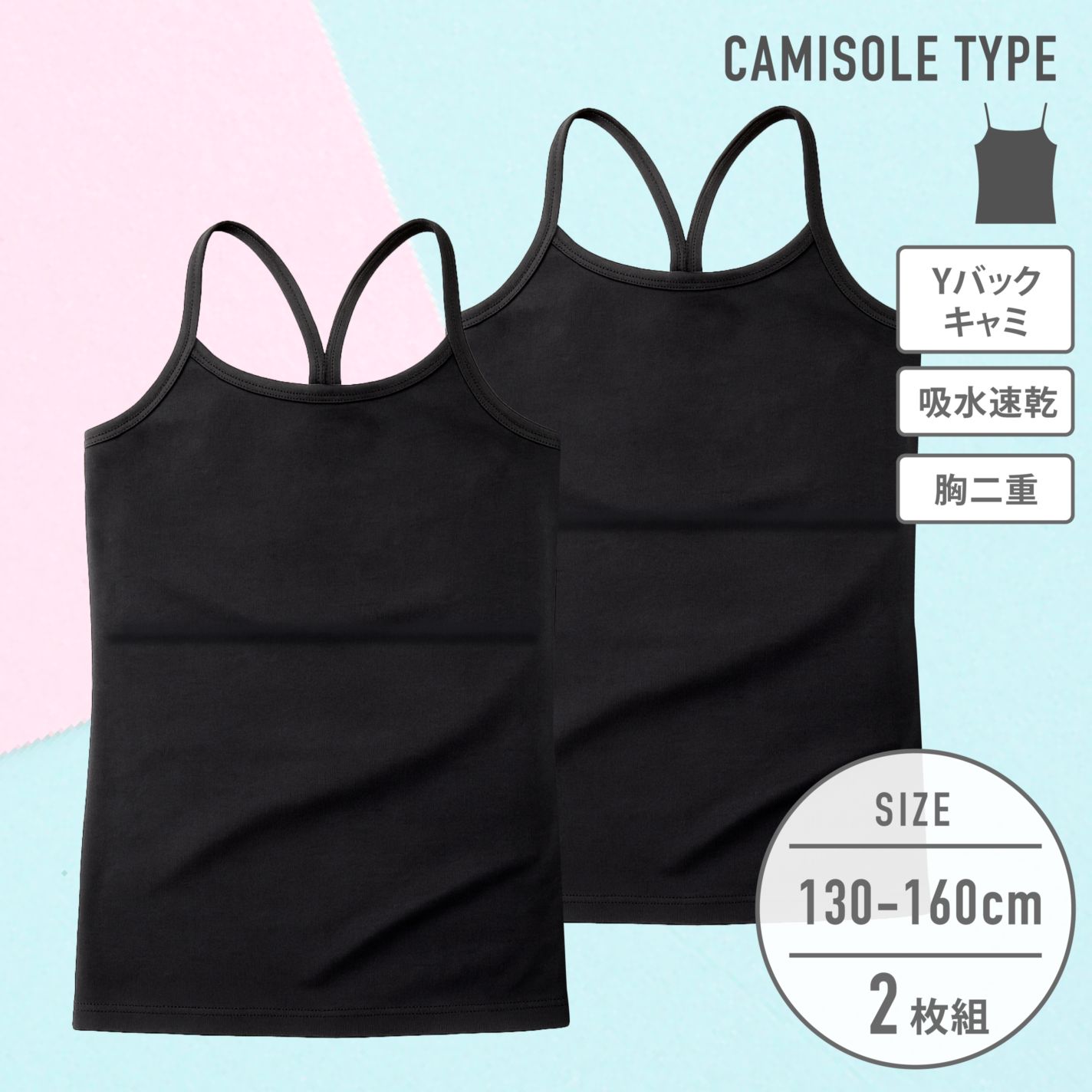 【女の子】ジュニアキャミソール 胸二重 2枚組 130~160cm 【吸水速乾/接触冷感】