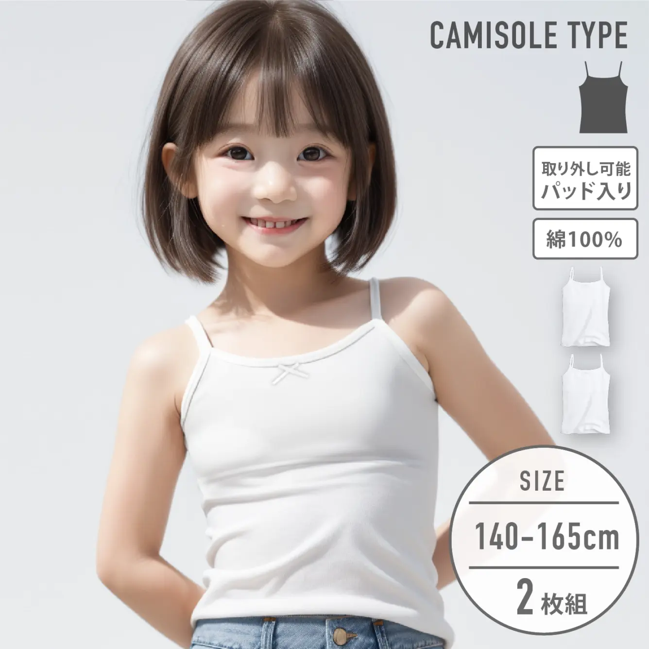 【女の子】ジュニアキャミソール パット入り 2枚組 140~165cm 【綿100%】