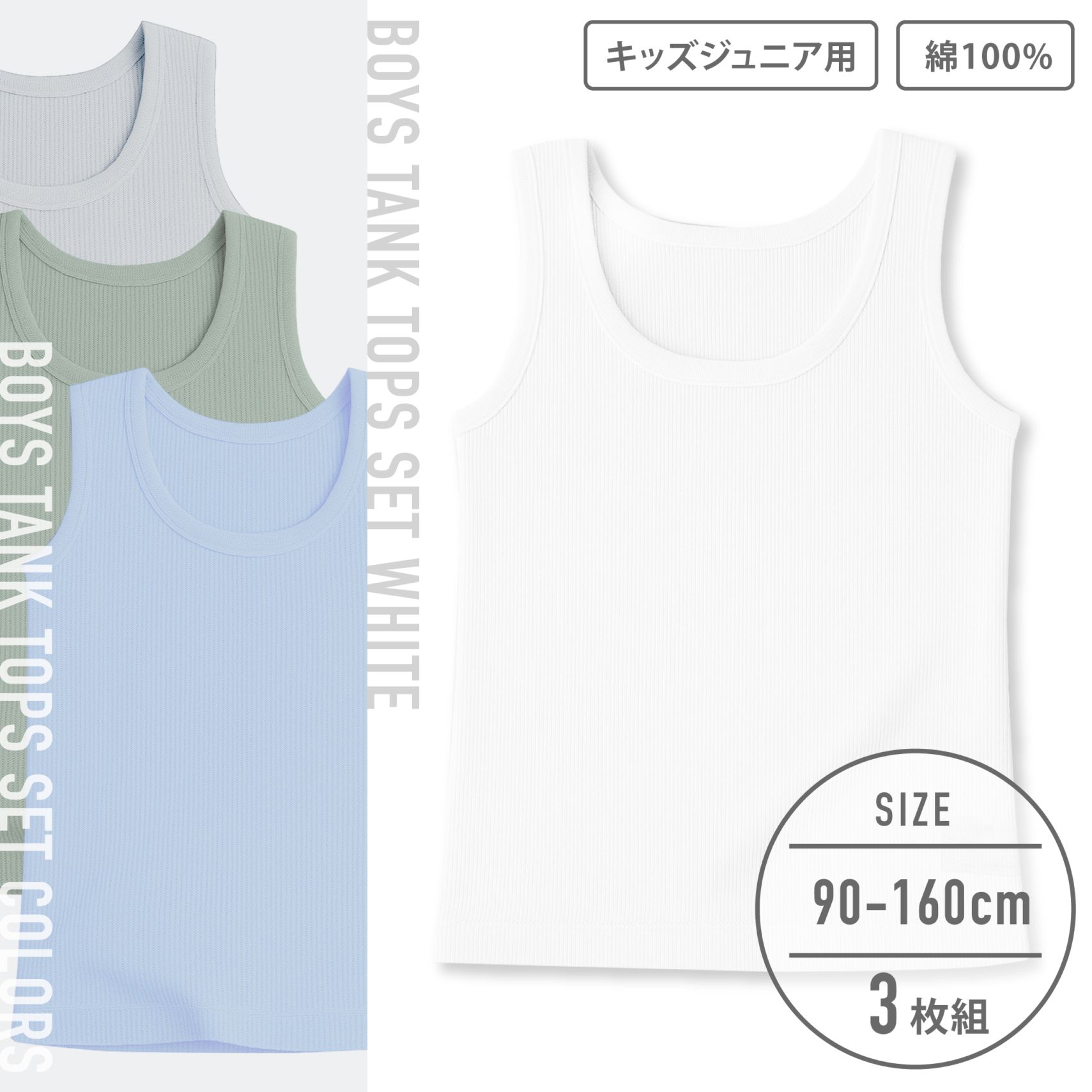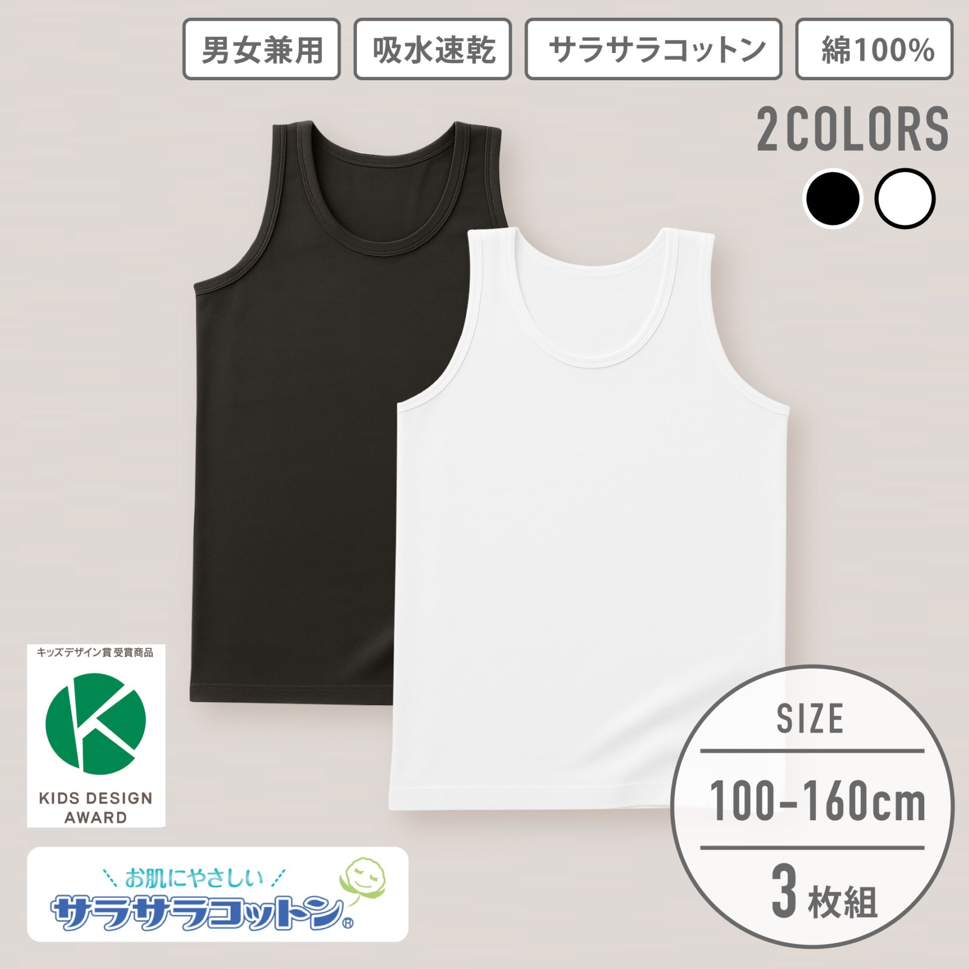 販売数60万セット突破!【男女兼用】キッズジュニアタンクトップ 3枚組 サラサラコットン/無地 100~160cm【綿100%/吸...