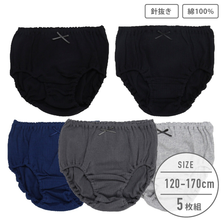 【女の子】キッズジュニアショーツ 5枚組 モノトーン/針抜き 120~170cm【綿100%】
