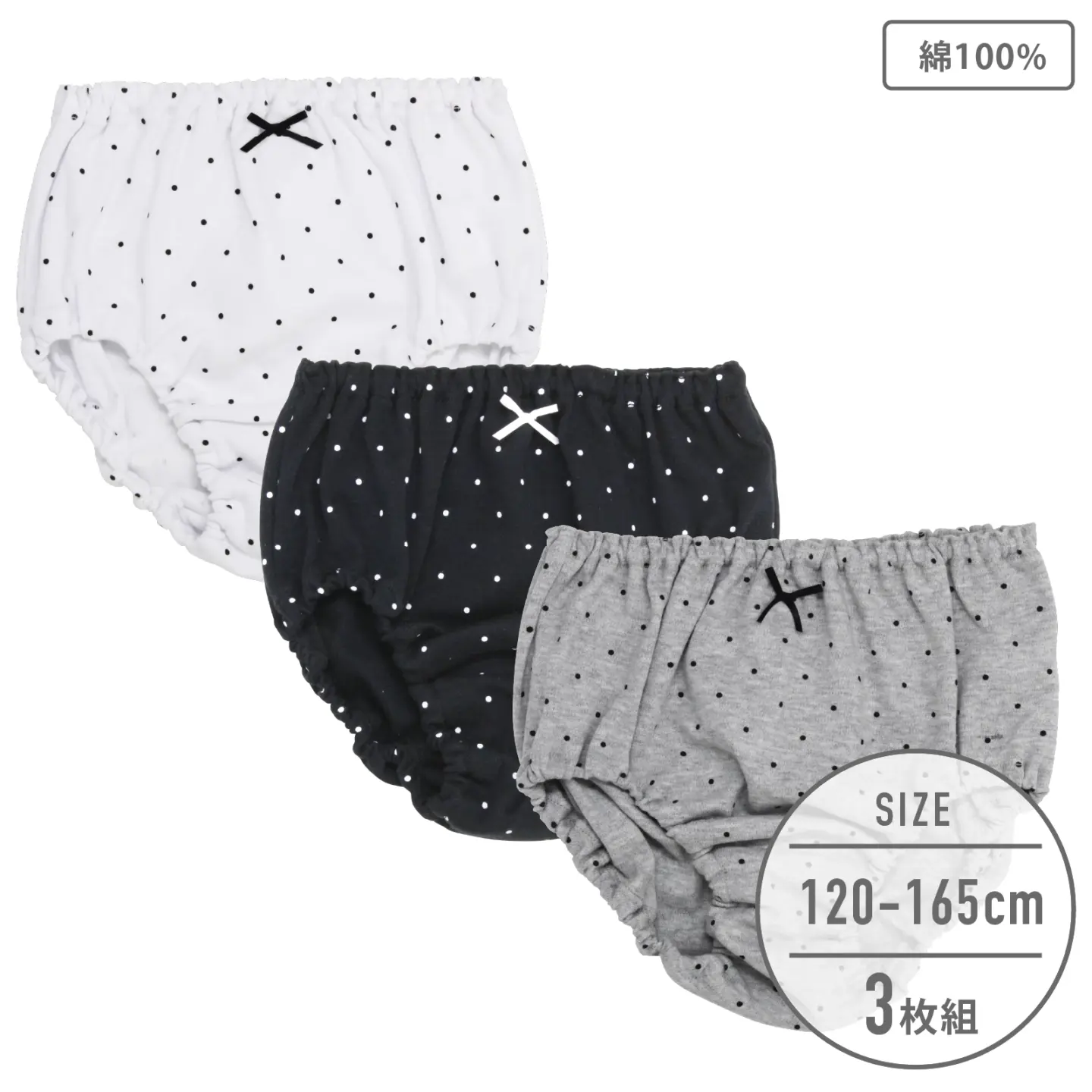 【女の子】キッズジュニアショーツ モノトーンドット柄 | 3枚組| 120~165cm【綿100%】