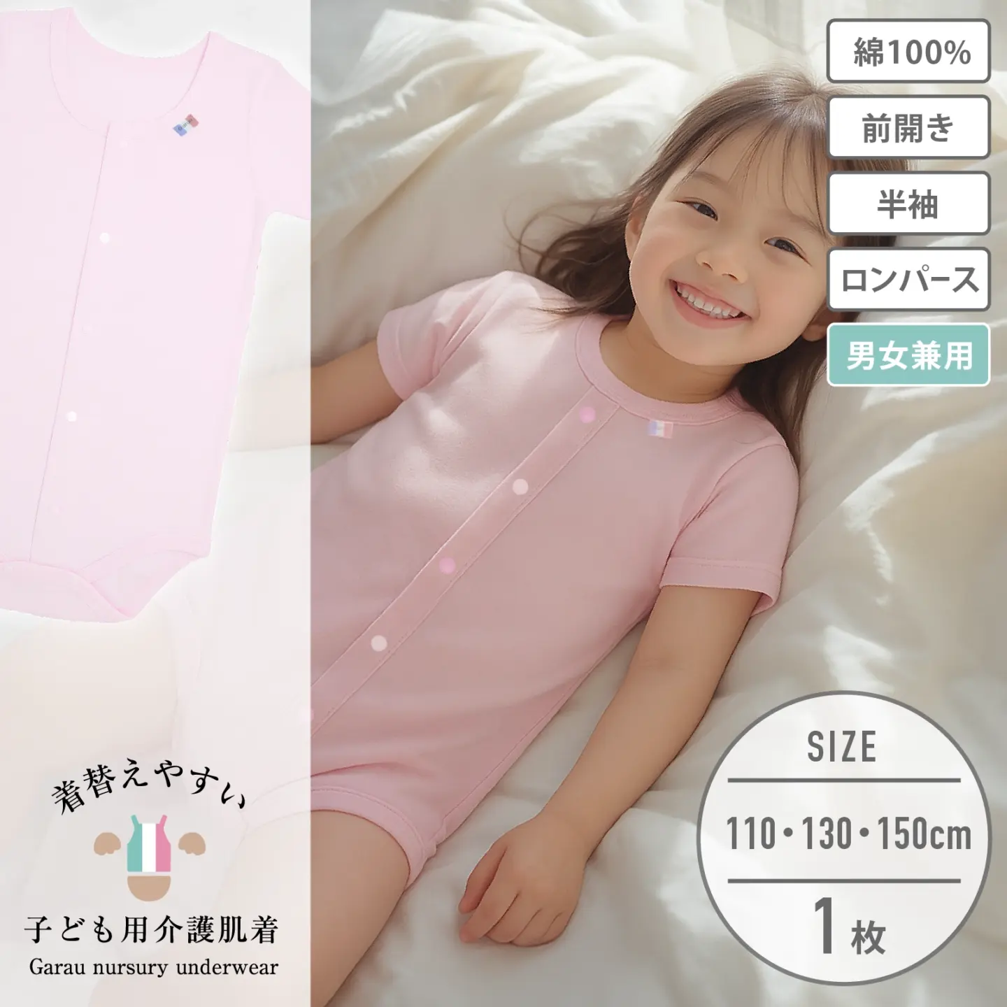 【男女兼用】着替えやすい子ども用介護肌着 前開きロンパース ピンク 110cm・130cm・150cm【綿100%】