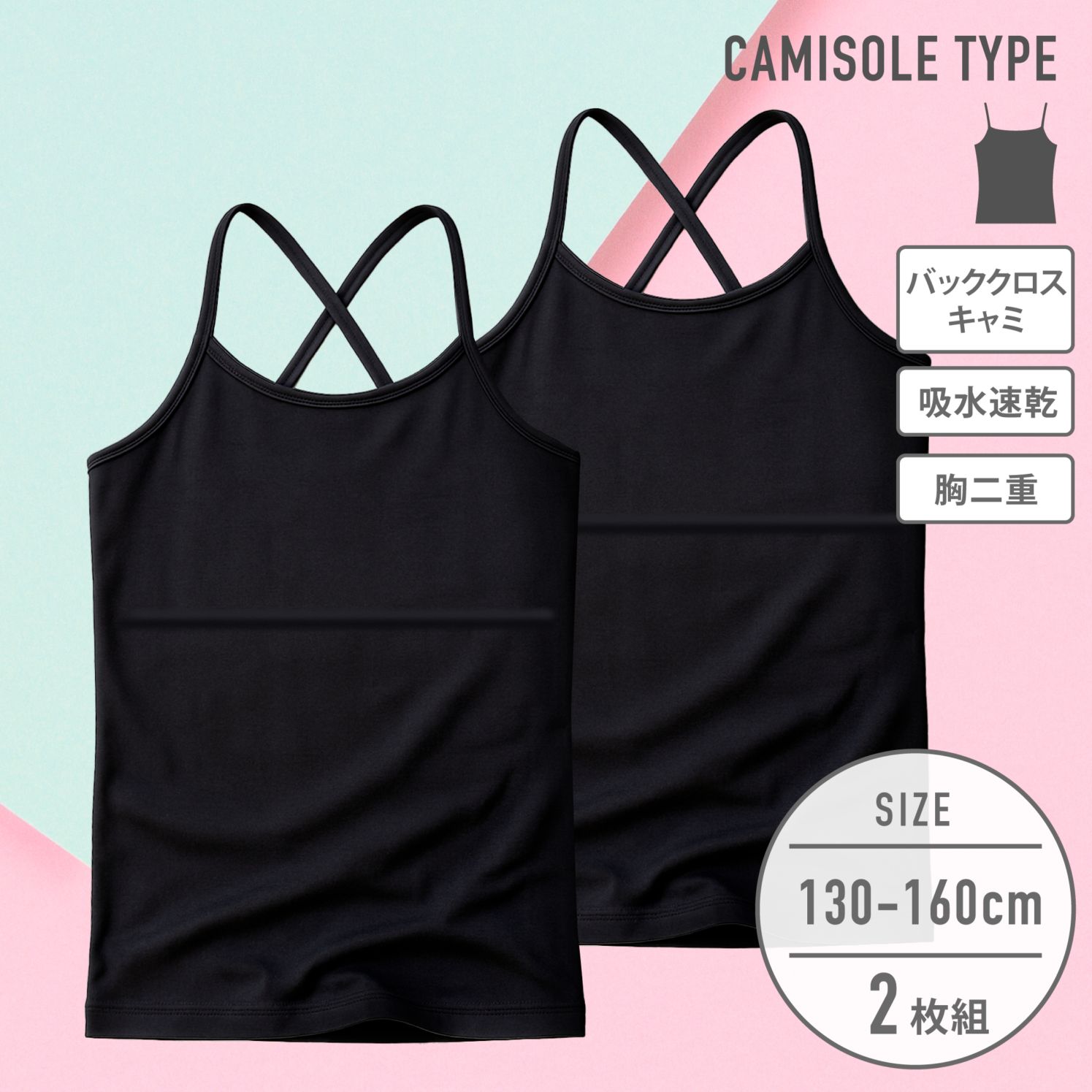 【女の子】ジュニアキャミソールバッククロス 胸二重 2枚組 130~160cm 【吸水速乾】