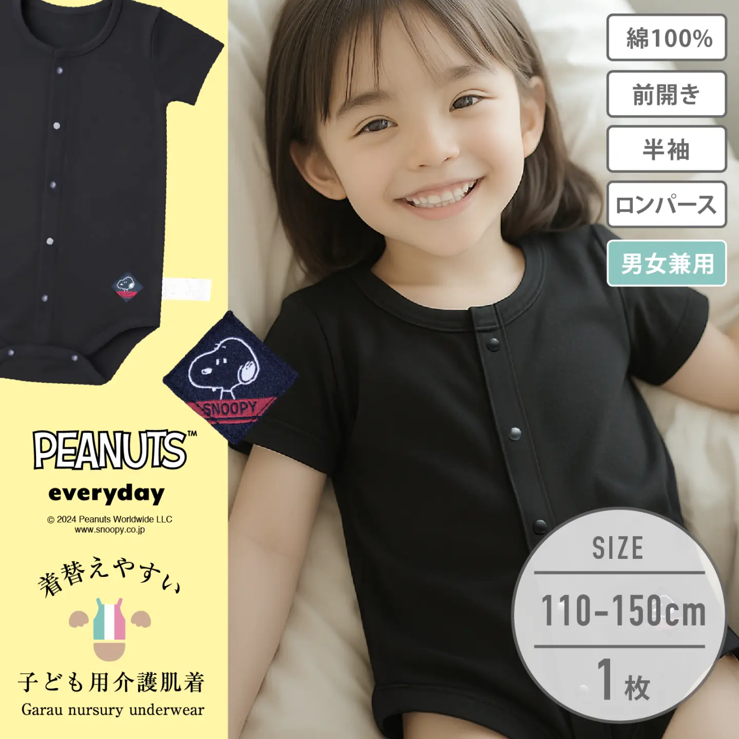 【スヌーピー】【男女兼用】着替えやすい子ども用介護肌着 前開き半袖ロンパース 110・130・150cm【綿100%】
