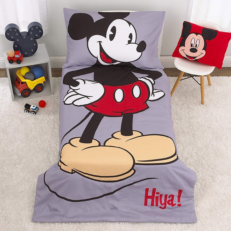 ディズニー ミッキーマウス ボディ子供 寝具 4点 セット トドラーベッディング 子ども用 ベッドカバー 掛布団 シーツ 枕カバー