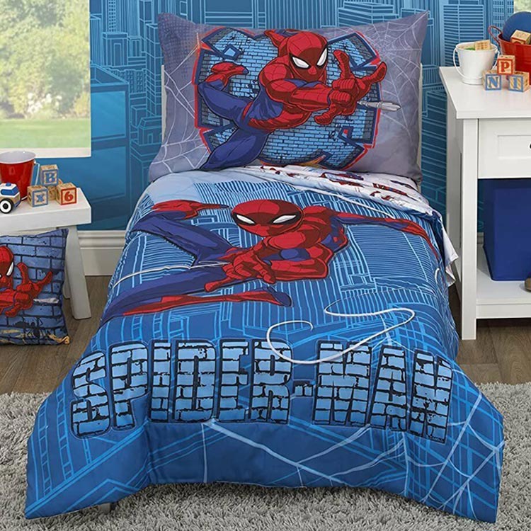 ディズニー スパイダーマン 子供 寝具 4点 セット トドラーベッディング 子ども用 ベッドカバー 掛布団 シーツ 枕カバー