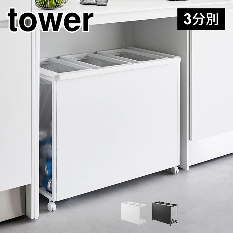 ゴミ箱 45リットル キャスター付き 山崎実業 目隠し分別ダストワゴン 45L 3分別 タワー 1826 1827 tower お...