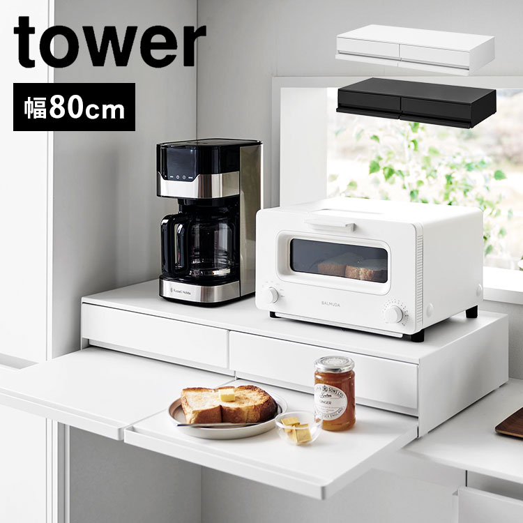 レンジ下 収納 ツーウェイキッチン家電下引き出し&スライドテーブル 山崎実業 タワー W80 tower レンジ台 キッチン収納 ...