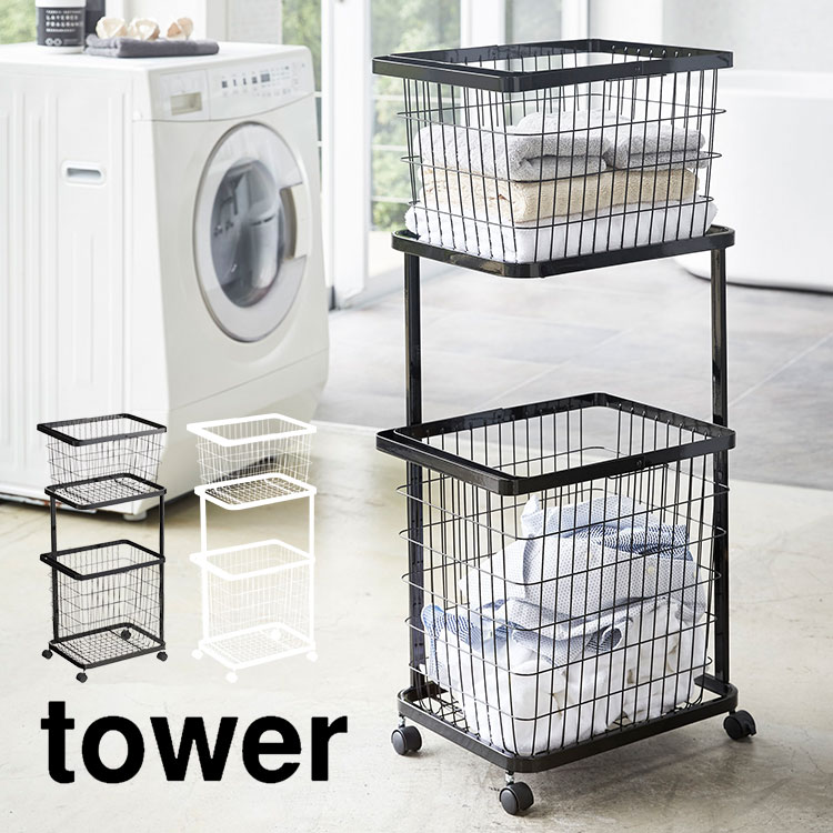 ランドリーワゴン バスケット セット 山崎実業 tower タワー ランドリーバスケット 3点セット キャスター付き 洗濯カゴ 洗...