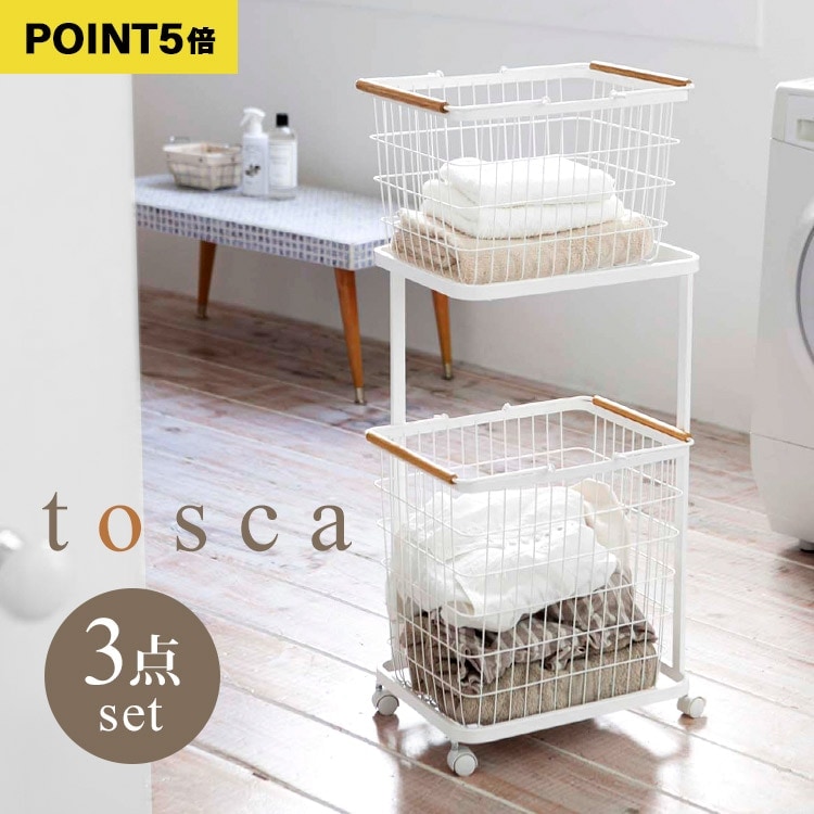 ランドリーワゴン バスケット セット 山崎実業 トスカ tosca ランドリーバスケット 3点セット シンプル 北欧 ナチュラル ...