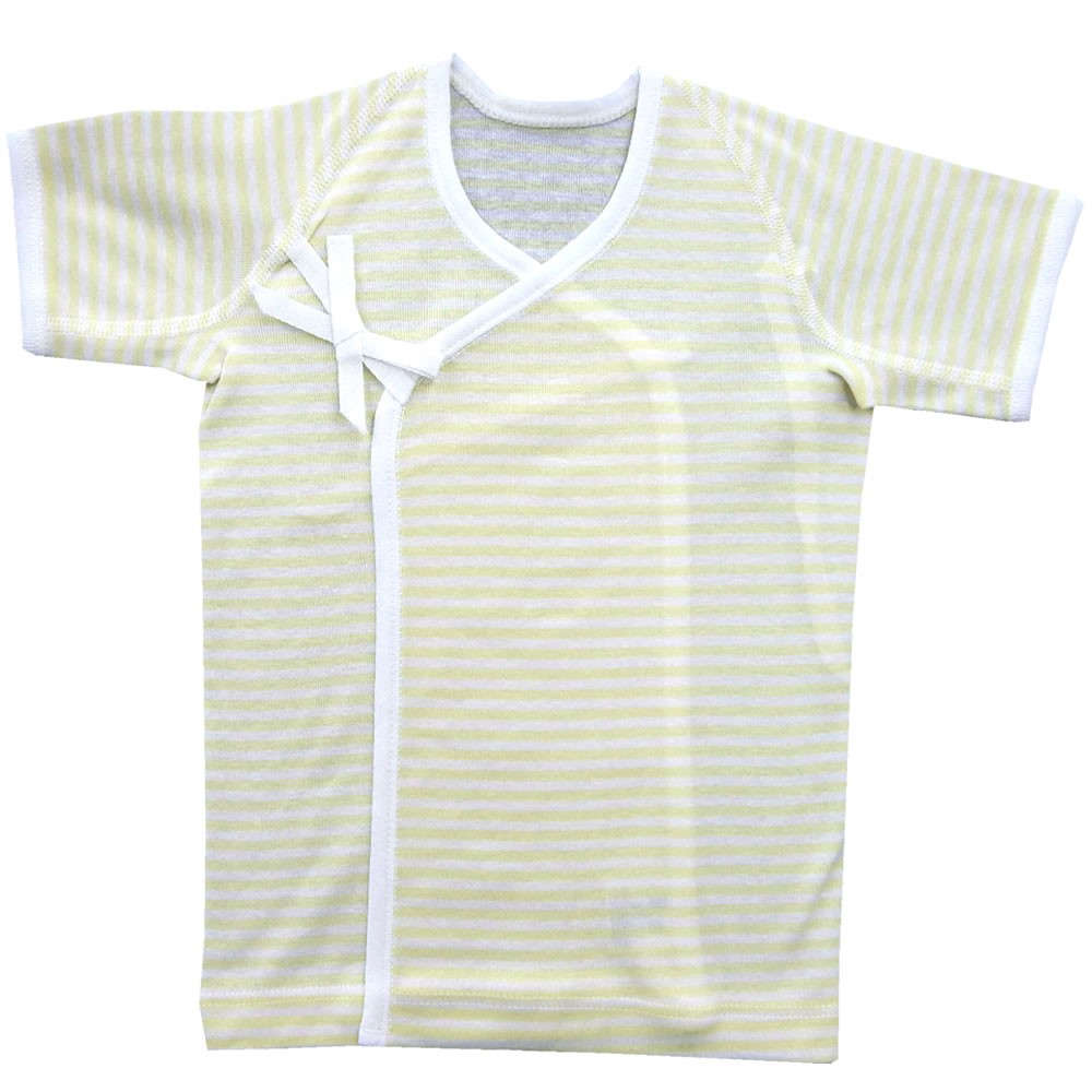 【新生児】 オーガニック短肌着 ボーダー 【サイズ50】:グリーン
