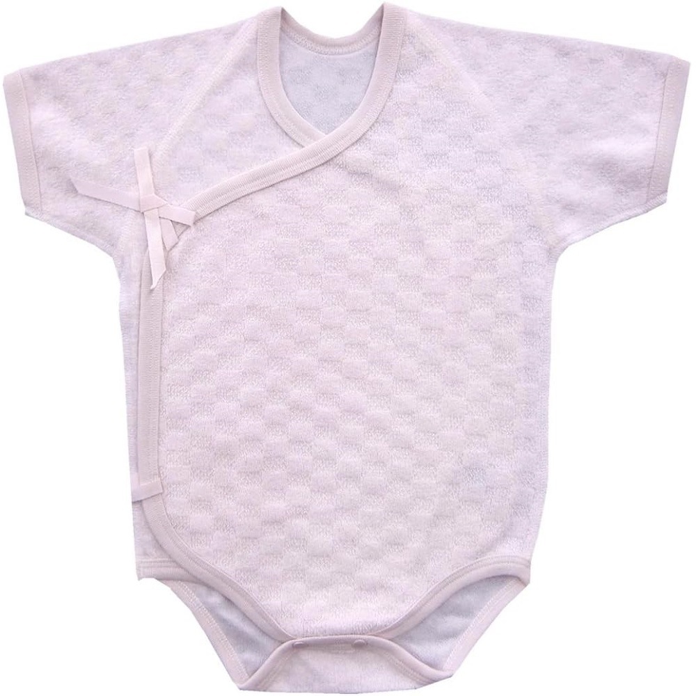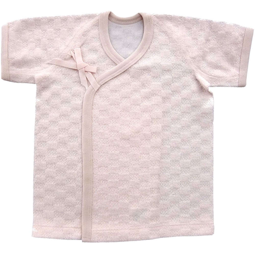 【新生児】 ジャガードパイル チェック柄 短肌着:ピンク 【サイズ50-60】