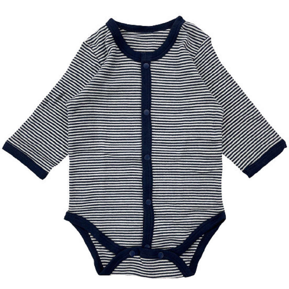 【新生児】 細ボーダー長袖前開きロンパース 【サイズ60】