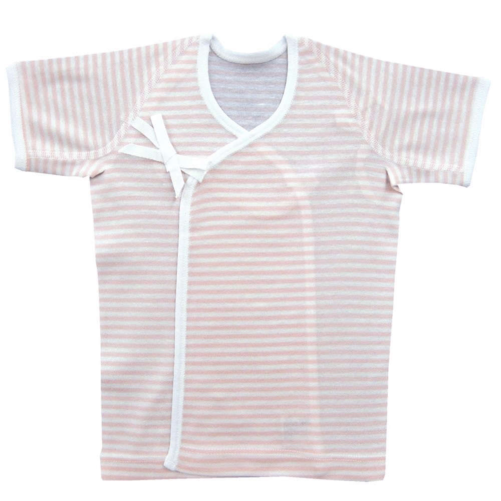 【新生児】 フライス短肌着:ボーダーピンク 【サイズ50】