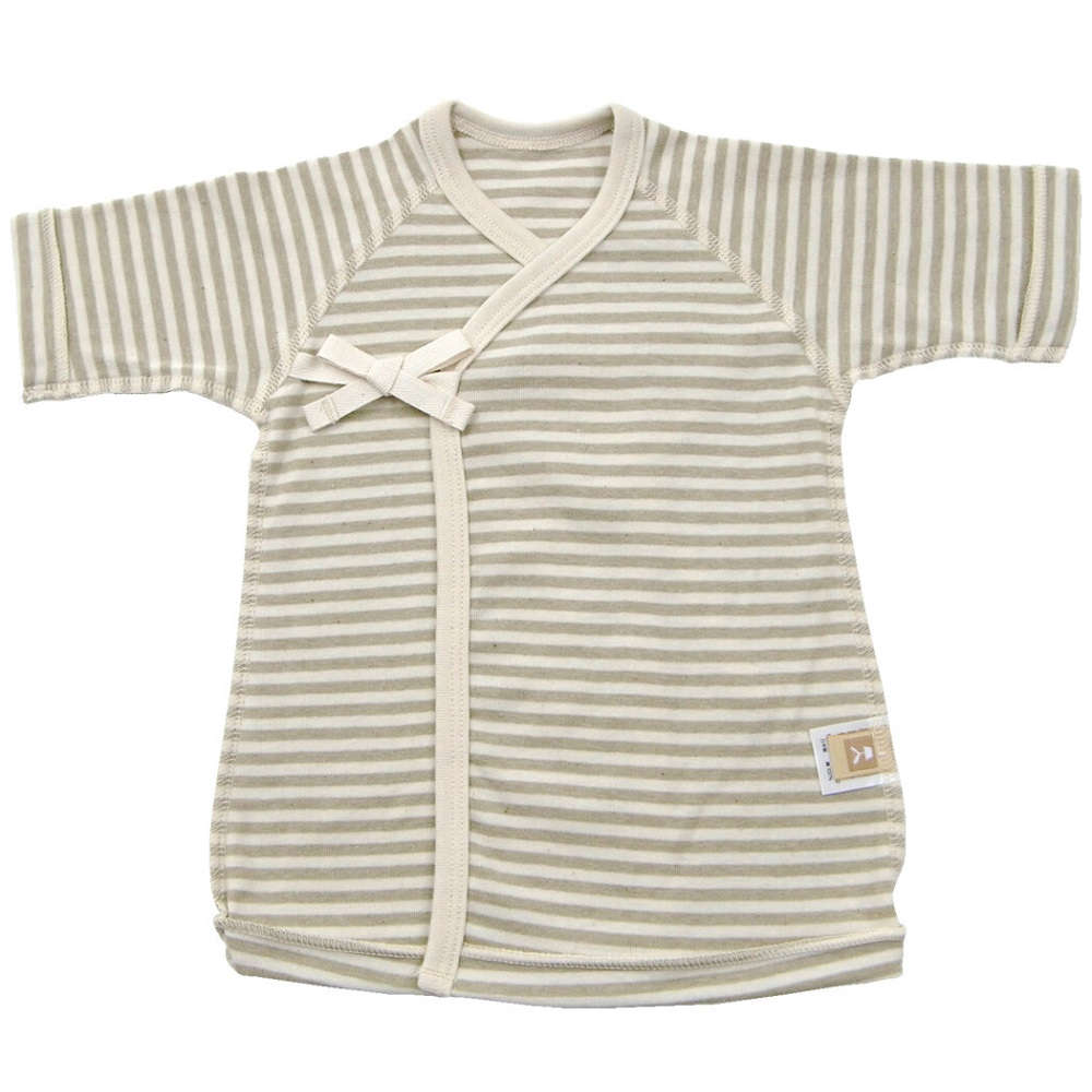 【新生児】 オーガニック短肌着 ボーダー 【サイズ50】:ブラウン