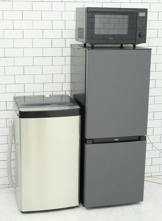 150L、5.5kg/25年、24年、23年/Haier、ヤマダ、ニトリ製/(冷蔵庫、洗濯機、電子レンジ)中古家電3点セット